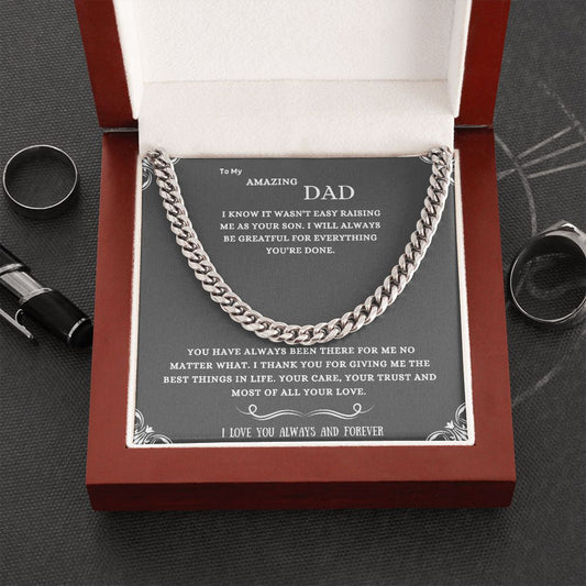 To My Amazing DAD Artisan Cross Necklace on Cuban Chain w/ MC