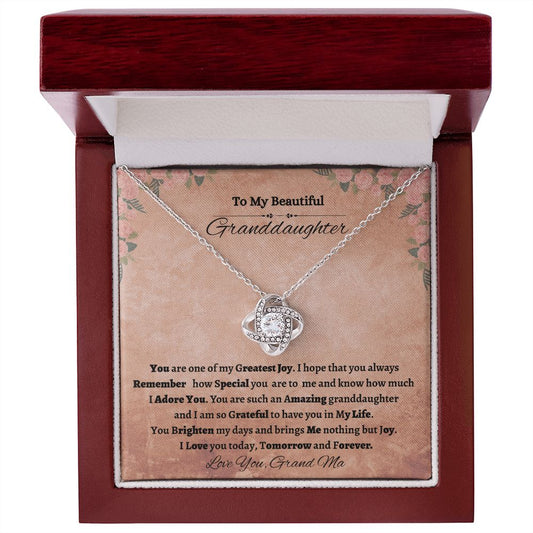 To My Beautiful Granddaughter Love Knot Necklace