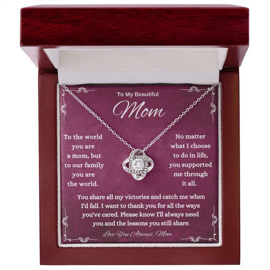 To My Beautiful MOM Love Knot Necklace
