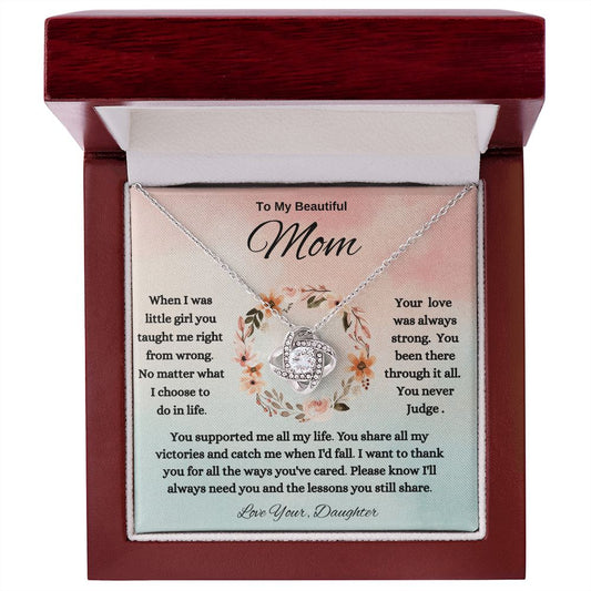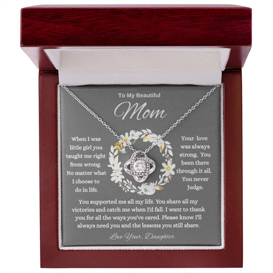 To My Beautiful MOM Love Knot Necklace From Daughter