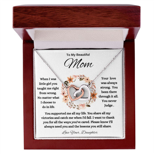 To My Beautiful MOM Interlocking Hearts Necklace
